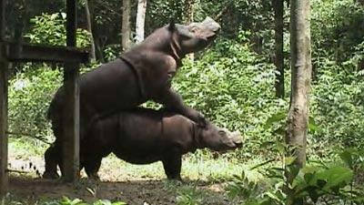 Ratu dan Andalas, sepasang badak sumatera di Way Kambas. Ratu kini sedang hamil satu bulan