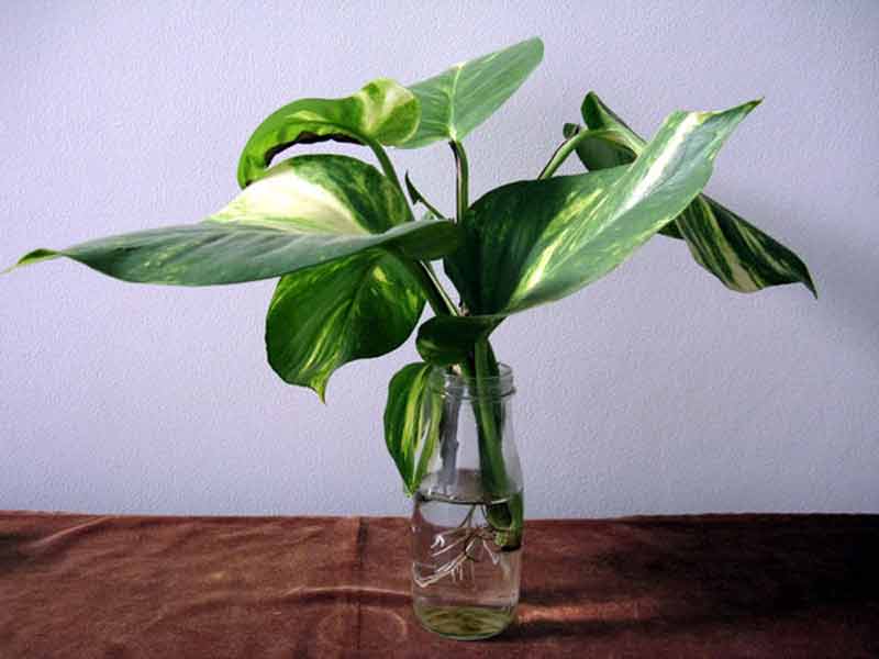 Sirih gading atau devil’s ivy (Epipremnum aureum) ditanam dalam botol
