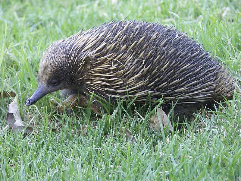 Ekidna Moncong Pendek, Tachyglossus aculeatus. Layaknya platipus, Ekidna adalah mamalia yang bertelur. Layaknya landak, badannya memiliki duri untuk melindungi diri