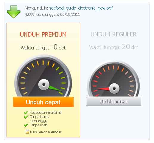- Terdapat dua pilihan, “UNDUH PREMIUM” dan “UNDUH REGULER”. Pilih “Unduh Reguler” (sebelah kanan) dengan meng-klik tulisan “Unduh lambat“.